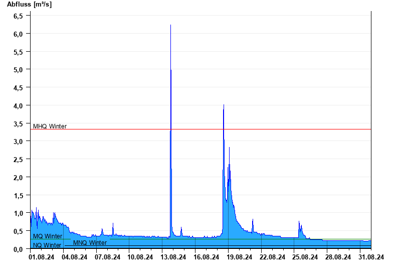 - Mittlerer Niedrigwasserabfluss MNQ 0,086 m³/s