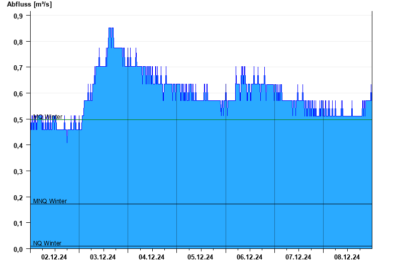 - Mittlerer Niedrigwasserabfluss MNQ 0,173 m³/s