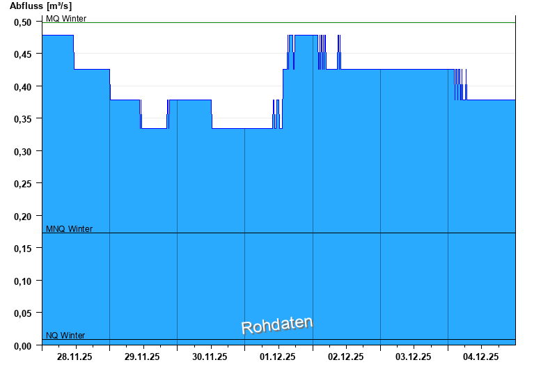 - Mittlerer Niedrigwasserabfluss MNQ 0,173 m³/s