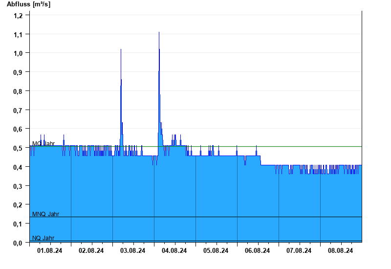 - Mittlerer Niedrigwasserabfluss MNQ 0,133 m³/s