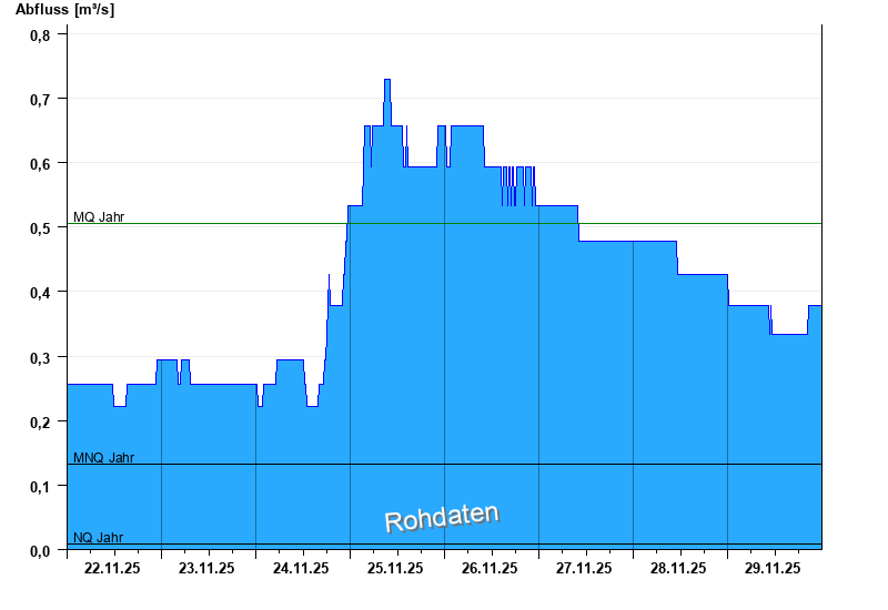 - Mittlerer Niedrigwasserabfluss MNQ 0,133 m³/s
