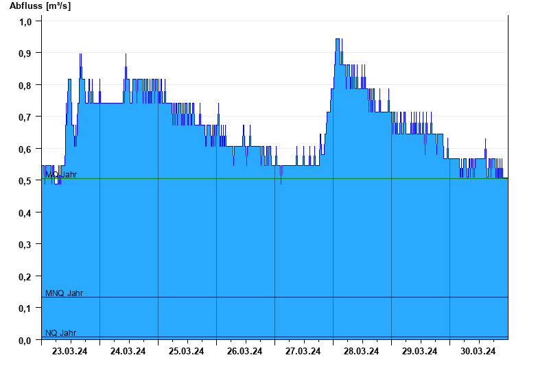 - Mittlerer Niedrigwasserabfluss MNQ 0,133 m³/s