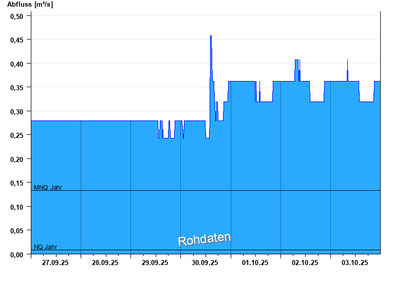 - Mittlerer Niedrigwasserabfluss MNQ 0,133 m³/s