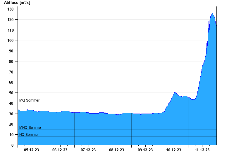 - Mittlerer Niedrigwasserabfluss MNQ 15,2 m³/s