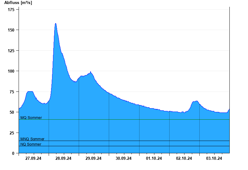 - Mittlerer Niedrigwasserabfluss MNQ 15,2 m³/s