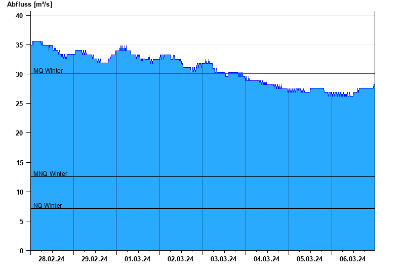 - Mittlerer Niedrigwasserabfluss MNQ 12,6 m³/s