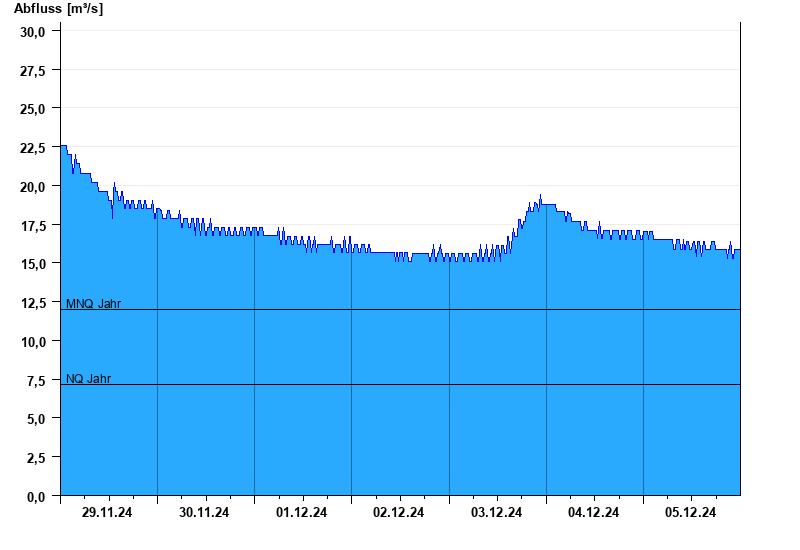 - Mittlerer Niedrigwasserabfluss MNQ 12 m³/s