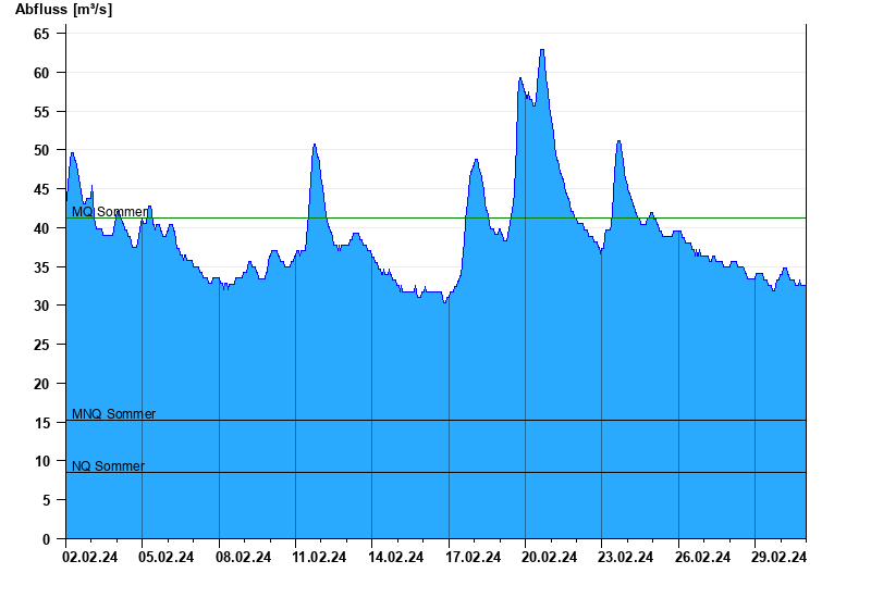 - Mittlerer Niedrigwasserabfluss MNQ 15,2 m³/s