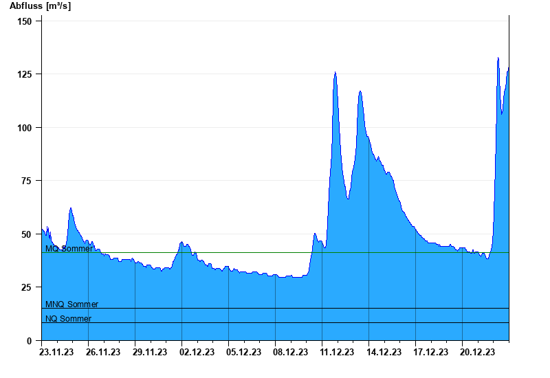- Mittlerer Niedrigwasserabfluss MNQ 15,2 m³/s