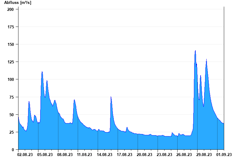 - 12.08.2002 Abfluss: 678 m³/s