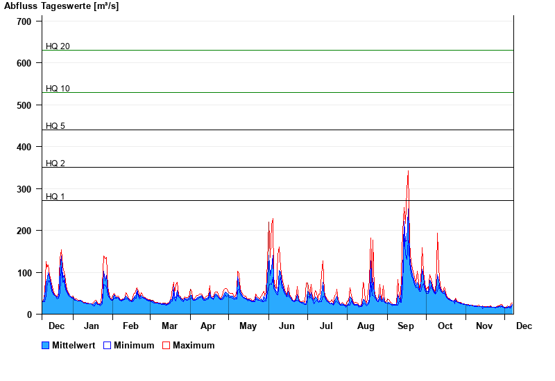 | Date | Mean value [m³/s] | Maximum [m³/s] | Minimum [m³/s] |