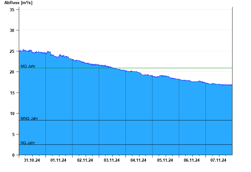 - Mittlerer Niedrigwasserabfluss MNQ 8,32 m³/s