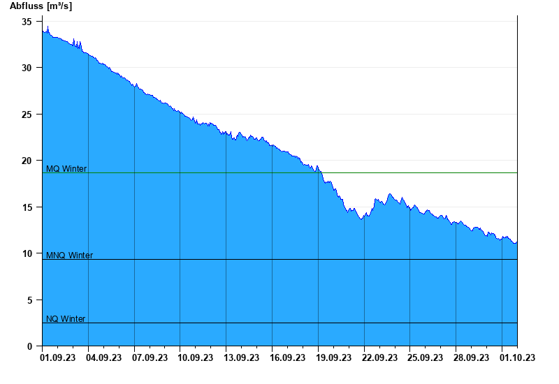 - Mittlerer Niedrigwasserabfluss MNQ 9,35 m³/s