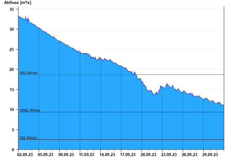 - Mittlerer Niedrigwasserabfluss MNQ 9,35 m³/s
