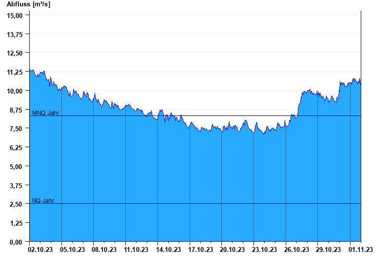 - Mittlerer Niedrigwasserabfluss MNQ 8,32 m³/s