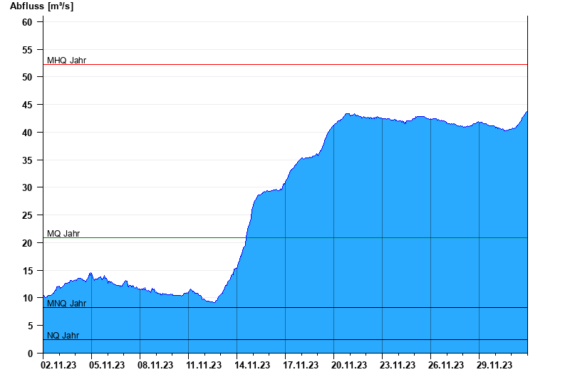 - Mittlerer Niedrigwasserabfluss MNQ 8,32 m³/s