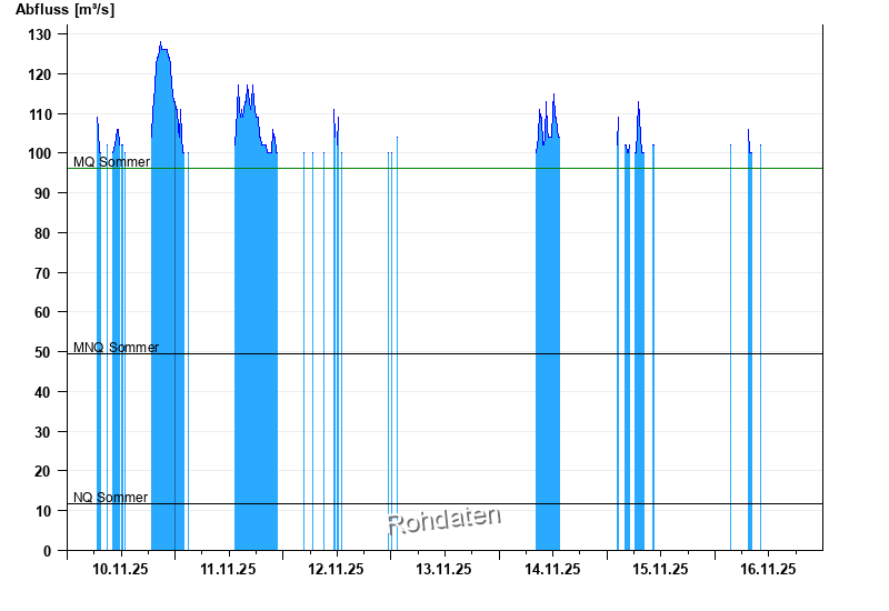 - Mittlerer Niedrigwasserabfluss MNQ 49,5 m³/s