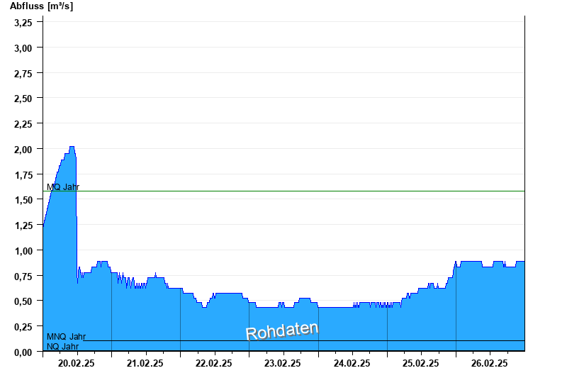 - Mittlerer Niedrigwasserabfluss MNQ 0,104 m³/s