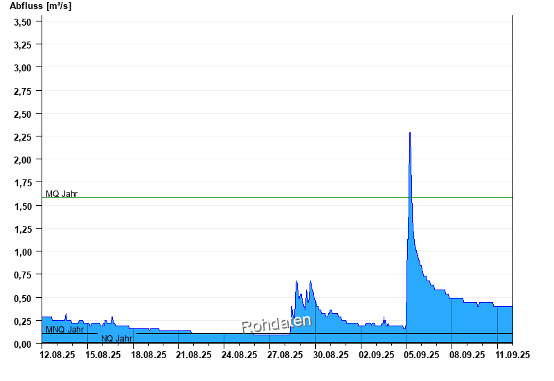 - Mittlerer Niedrigwasserabfluss MNQ 0,104 m³/s