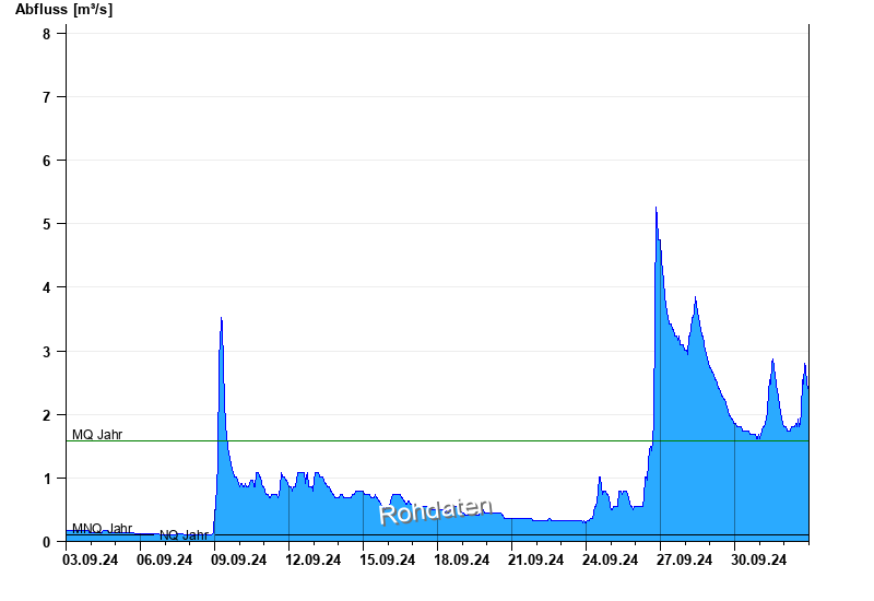 - Mittlerer Niedrigwasserabfluss MNQ 0,104 m³/s