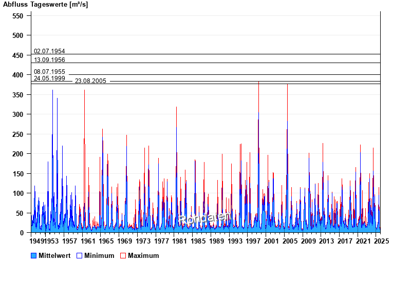 | Date | Mean value [m³/s] | Maximum [m³/s] | Minimum [m³/s] |