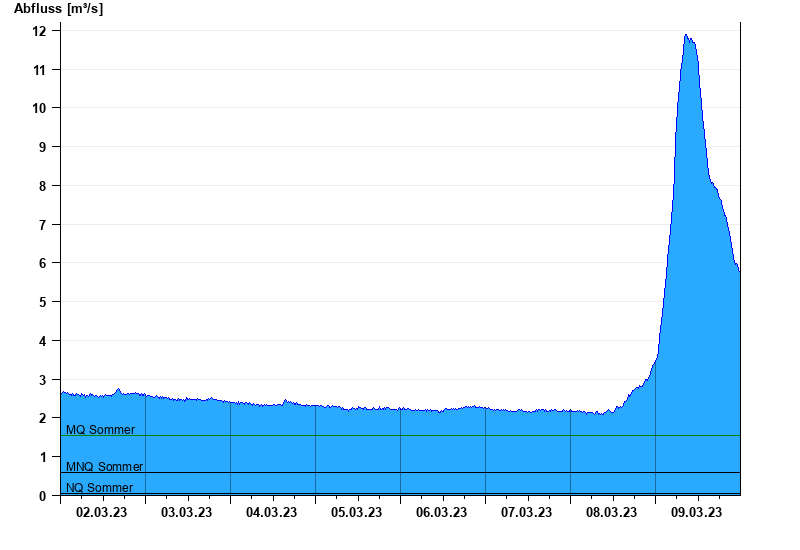 - Mittlerer Niedrigwasserabfluss MNQ 0,6 m³/s