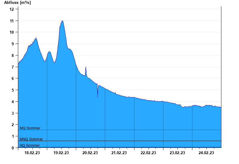- Mittlerer Niedrigwasserabfluss MNQ 0,6 m³/s