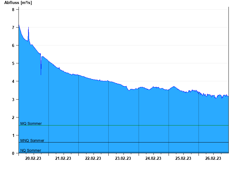 - Mittlerer Niedrigwasserabfluss MNQ 0,6 m³/s