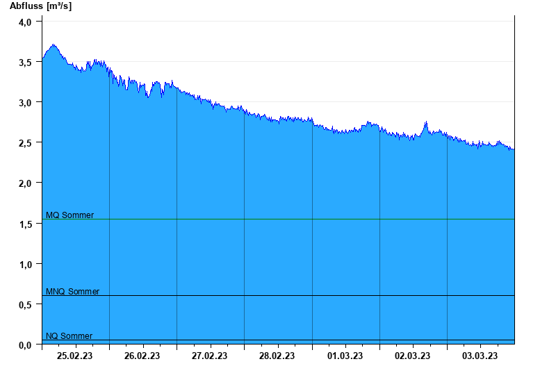 - Mittlerer Niedrigwasserabfluss MNQ 0,6 m³/s