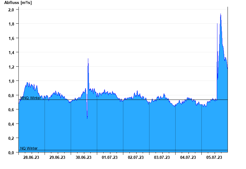 - Mittlerer Niedrigwasserabfluss MNQ 0,734 m³/s