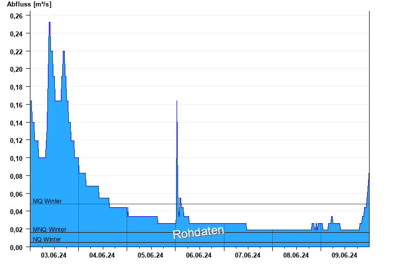 - Mittlerer Niedrigwasserabfluss MNQ 0,016 m³/s