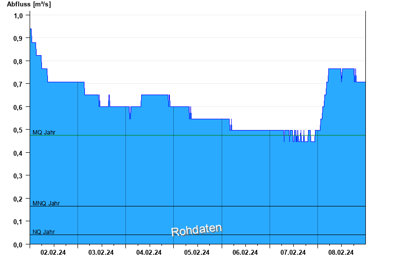 - Mittlerer Niedrigwasserabfluss MNQ 0,165 m³/s
