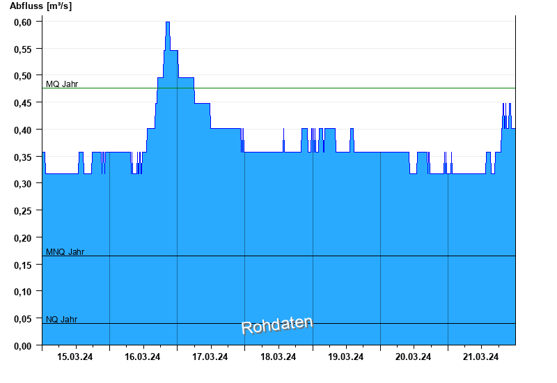 - Mittlerer Niedrigwasserabfluss MNQ 0,165 m³/s