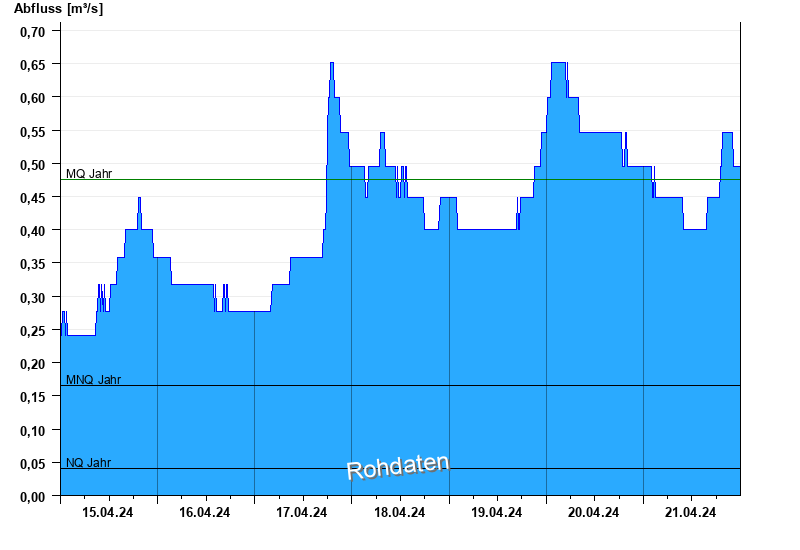 - Mittlerer Niedrigwasserabfluss MNQ 0,165 m³/s