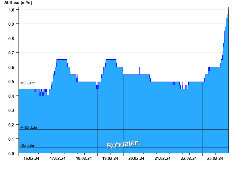 - Mittlerer Niedrigwasserabfluss MNQ 0,165 m³/s