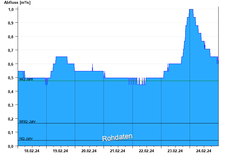 - Mittlerer Niedrigwasserabfluss MNQ 0,165 m³/s