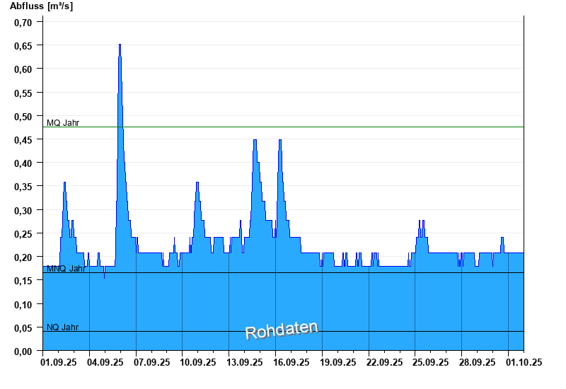 - Mittlerer Niedrigwasserabfluss MNQ 0,165 m³/s