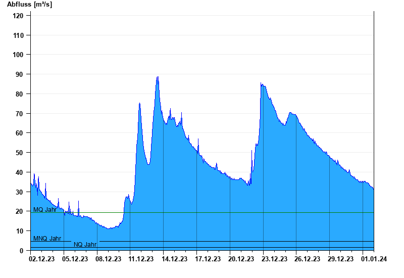 - Mittlerer Hochwasserabfluss MHQ 207 m³/s