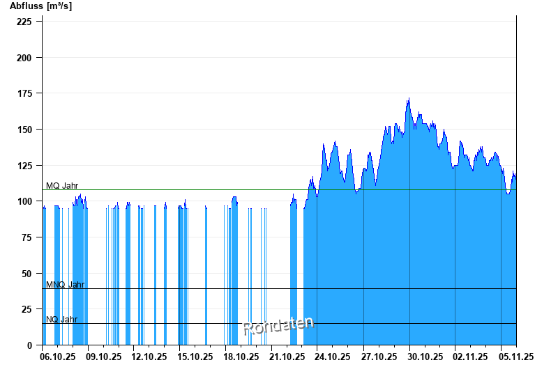 - Mittlerer Niedrigwasserabfluss MNQ 39,4 m³/s