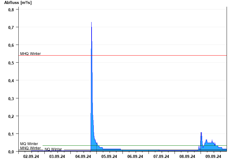 - Mittlerer Niedrigwasserabfluss MNQ 0,009 m³/s