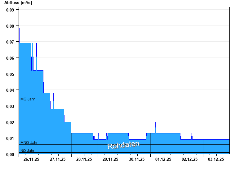 - Mittlerer Niedrigwasserabfluss MNQ 0,006 m³/s