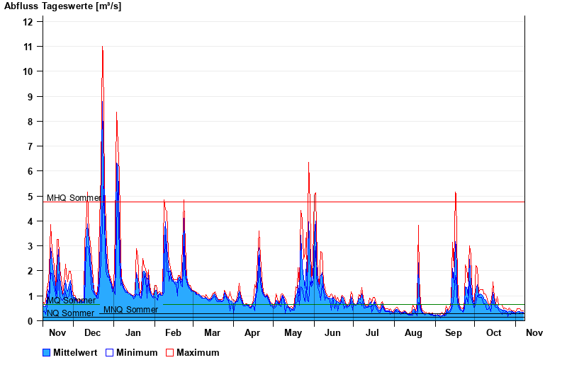 - Mittlerer Niedrigwasserabfluss MNQ 0,295 m³/s