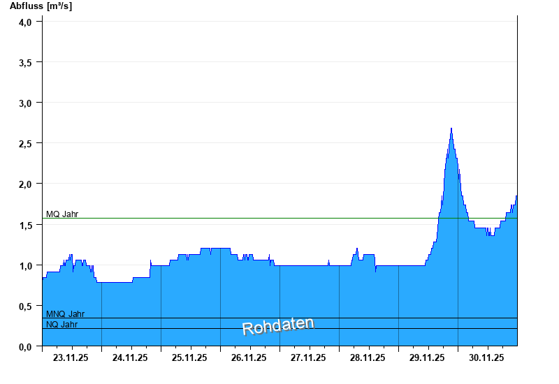 - Mittlerer Niedrigwasserabfluss MNQ 0,345 m³/s