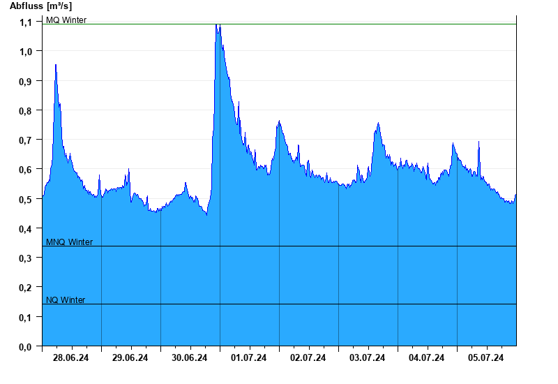 - Mittlerer Niedrigwasserabfluss MNQ 0,338 m³/s