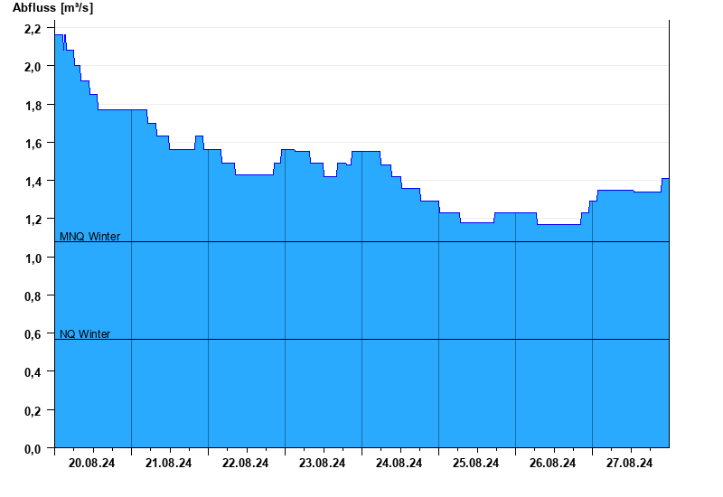 - Mittlerer Niedrigwasserabfluss MNQ 1,08 m³/s