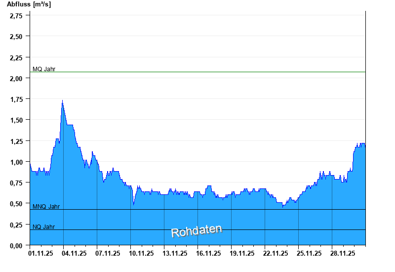 - Mittlerer Niedrigwasserabfluss MNQ 0,423 m³/s