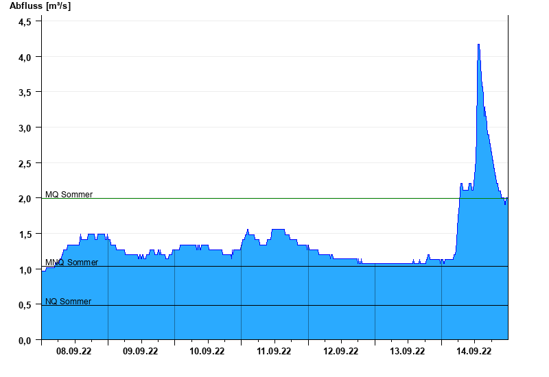 - Mittlerer Niedrigwasserabfluss MNQ 1,04 m³/s