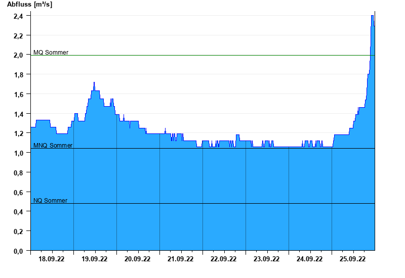 - Mittlerer Niedrigwasserabfluss MNQ 1,04 m³/s