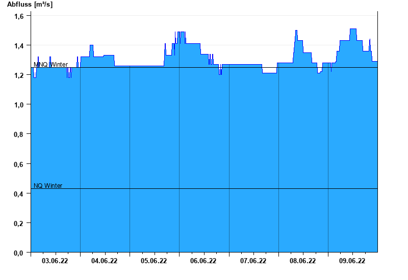 - Mittlerer Niedrigwasserabfluss MNQ 1,25 m³/s