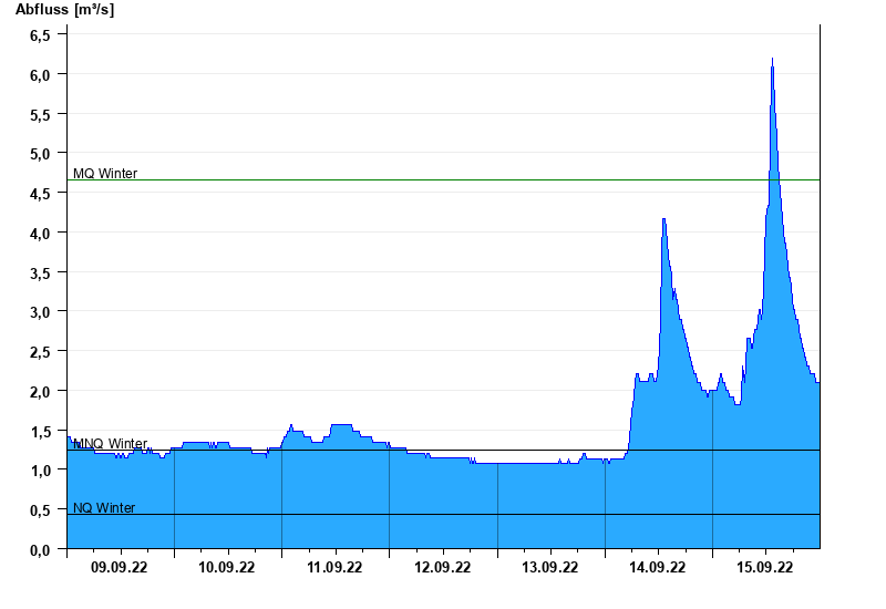 - Mittlerer Niedrigwasserabfluss MNQ 1,25 m³/s